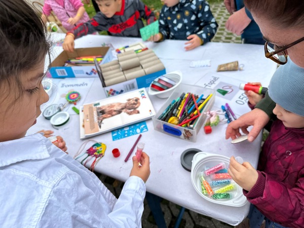 Für die Kinder gab es viele Highlights: In der Turnhalle warteten kleine „Olympische Spiele“ mit Werfen, Hochsprung, Weitsprung und Seilklettern. Große Begeisterung herrschte außerdem beim Glitzer-Tattoo-Stand und am Basteltisch, wo viele kreative Kunstwerke entstanden.
